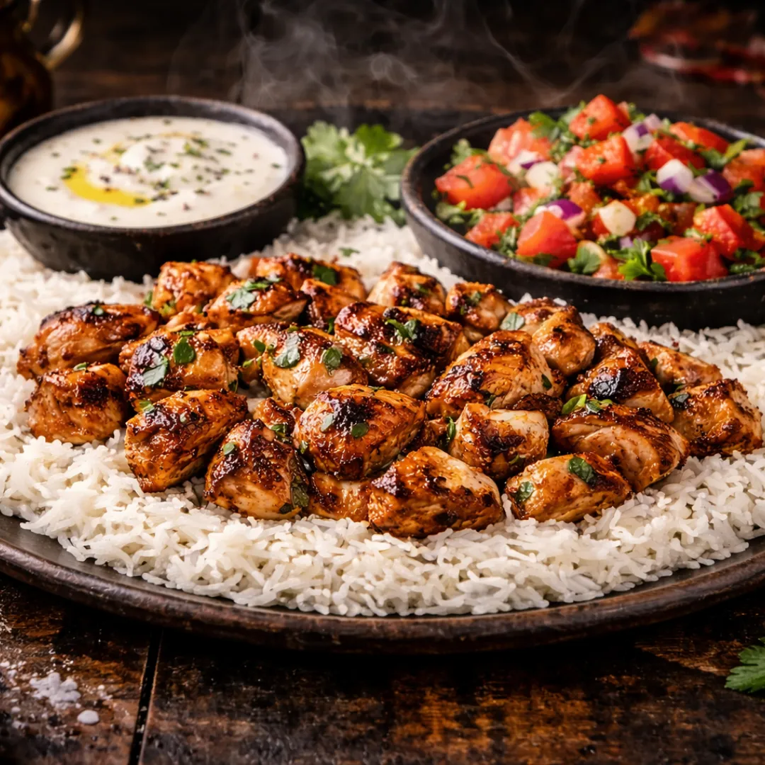 BBQ chicken + basmati rice.
