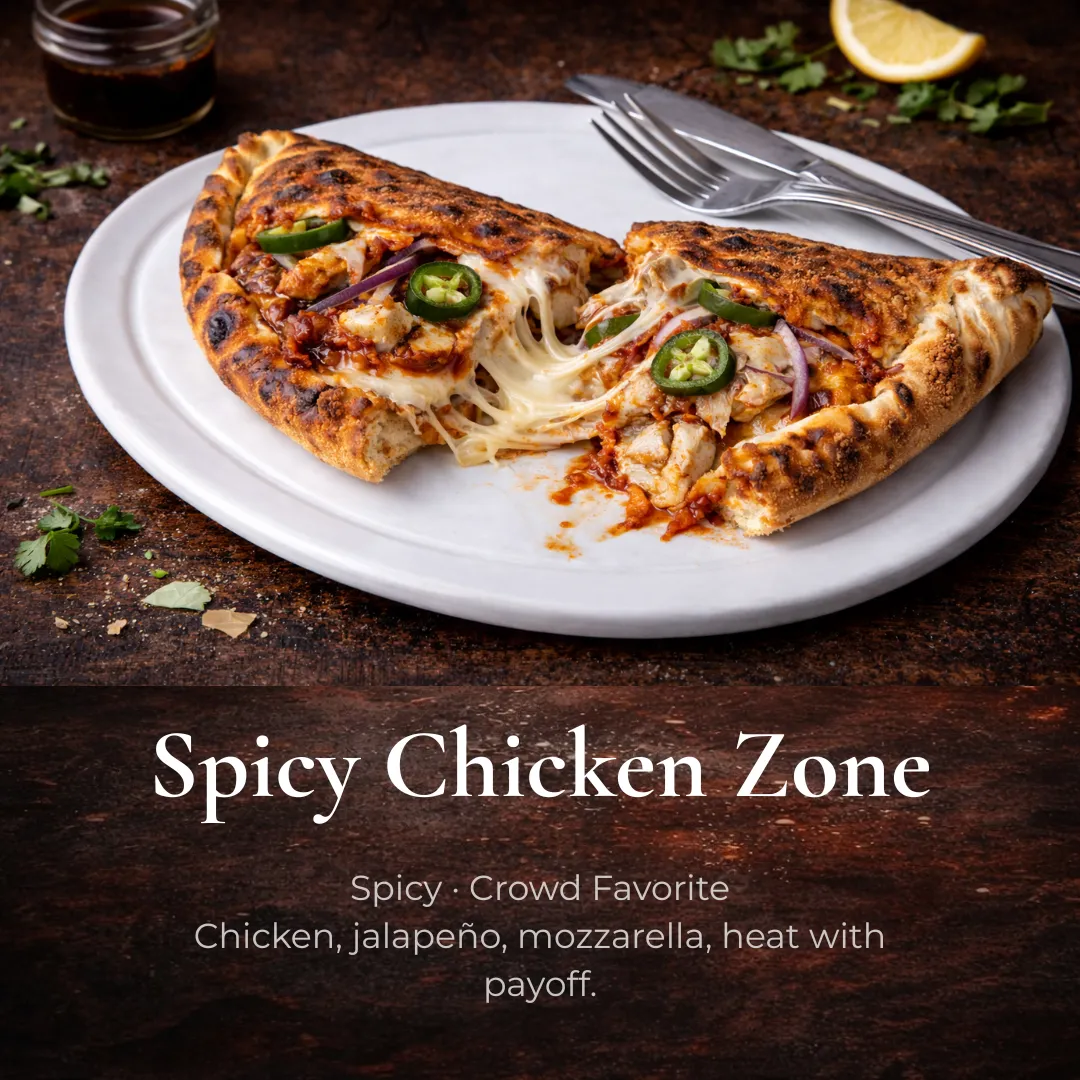 Chicken, jalapeño, mozzarella, heat with payoff.